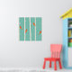 A poster with an illustration of birch trees with orange birds sitting on their branches. Retro green coloured background.