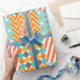 Retro Orange Blue Mustard Yellow Patchwork Pattern Wrapping Paper