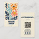 Retro Orange Blue QR Code Groovy Floral Boho Chic Business Card
