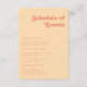 Retro Orange Schedule of Events Rounded Edges Enclosure Card
