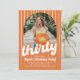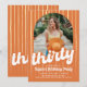 Turning 30 never looked so fun! This vibrant 30th birthday invitation features bold orange stripes, playful white script text, and space for a personalized photo. It’s the perfect mix of retro charm and modern style to kick off your milestone celebration with flair. Fully customizable to match your party vibe!