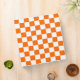 Cool fresh chequered pattern design, modern interior design decor for home, living room, nursery room, kids room. Chequered colourful curtains, rug, phone case. Chequered 70s and 60s trend design idea. Orange and white checkers
