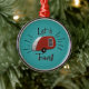 La rétro conception sur cet ornement est réminiscente des annonces d'impression des années 50 et le début des années 1960 avec un campeur de larme en rouge et argenté vintages et l'expression "nous laisse voyager !" De mon image numériquement créée d'original.