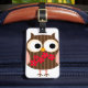 Retro Owl Girl with Flowers Luggage Tag
