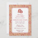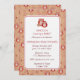 The invitation features a pattern of several cheerful owls in retro warm colours among floral vines. A whimsical invitation to use for a baby shower or any occasion.