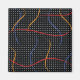 Retro 1980’s primary colour paint strokes splatter pattern on a geometric black and white dotted background.