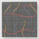 Retro 1980’s primary colour paint strokes splatter pattern on a geometric black and white dotted background.