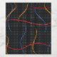 Retro 1980’s primary colour paint strokes spatter pattern on a geometric black and white dotted background.