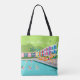 This Retro Palm Springs Hotel Tote is as fabulous as it is kitschy. Its garishly bright rainbow facade is dwarfed by the lime green mountains and spectacularly iconic palm trees. There's a party going on by the pool with bathing beauties and muscle men soaking up some vitamin D while watching the synchronized swimmers perform. It appears that only one of the swimmers knows the routine; the other four are out of sync. How embarrassing for them! The only thing that would make this design say “Palm Springs” more would be if it was written in the clouds. Oh, wait. It is!