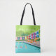 This Retro Palm Springs Hotel Tote is as fabulous as it is kitschy. Its garishly bright rainbow facade is dwarfed by the lime green mountains and spectacularly iconic palm trees. There's a party going on by the pool with bathing beauties and muscle men soaking up some vitamin D while watching the synchronized swimmers perform. It appears that only one of the swimmers knows the routine; the other four are out of sync. How embarrassing for them! The only thing that would make this design say “Palm Springs” more would be if it was written in the clouds. Oh, wait. It is!