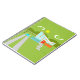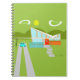 This Retro Palm Springs House with Car Notebook is a mid century modern lover’s dream. The minimalist art design features a sleek orange and glass house with a dramatically sloping checkmark shape roof. The red door offsets the orange stone planter filled with greenery and the decorative turquoise cinderblock privacy screen. Staggered concrete blocks form the perfect walkway through the lush, green lawn. A white carport offers shelter to a turquoise and white classic 1950’s car with fins. The car is perfect for driving around the green, rounded mountains in the distance. The kitschy 1960’s style house looks like a shady oasis from the hot, Palm Springs sun.