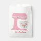 This playful personalized favour bag features a pink stand mixer with the saying "Baking Spirit's Bright" with alternating colours and sparkle accents. Colours include pink, red, green and light blue. You can personalize with your last name making it the perfect bag for packaging up your baked goods!