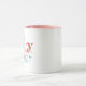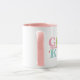 This playful mug features the saying "Glory to the Newborn King" with alternating colours on lowercase letters with sparkle accents. Colours include pink, red, green and light blue.