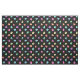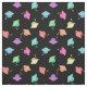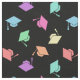Fun graduation fabric with a pattern of pastel-coloured graduation caps against a black background.