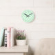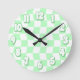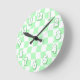 Retro Pastel Green White Wavy Chequered Pattern Round Clock