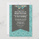 Retro Pattern and Floral Turquoise Wedding Invites