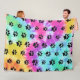 Retro Paw Print Rainbow Tie Dye Fleece Blanket