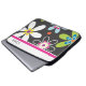 Retro peace signs in orange, green, pink blue and purple on a black background make this laptop sleeve a cool accessory to have .. perfect gift idea for woman or tweenw and teens.