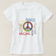 This retro design features a multicolored peace sign with the words Peace, Hope, Love, Dream, Imagine and Together. This design can be found on t-shirts, hoodies, mousepads and more!