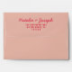 A retro modern hand written bright colourful wedding envelope. Which features bold bride and groom's names in red magenta colour. And personalized return address . On simple blush peach peachy vintage colour background. Which suits the whole wedding suite.