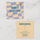 Bring a splash of retro charm to your professional identity with this periwinkle and peach chequerboard business card. Featuring bold typography, a cheerful daisy icon, and a soft yet playful colour palette, this design is ideal for creatives, influencers, entrepreneurs, or small business owners. Personalize it with your name, title, contact info, and social media handles to make networking effortless and stylish.