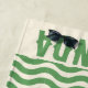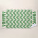 personalized Coastal theme beach towel green and cream with wavy stripes are the perfect vacation gift, birthday gift or bridesmaid gift for a family vacation gift.