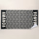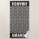 personalized Coastal theme beach towel black and white with wavy stripes are the perfect vacation gift, birthday gift or bridesmaid gift for a family vacation gift.