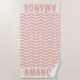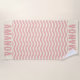 personalized Coastal theme beach towel pink and cream with wavy stripes are the perfect vacation gift, birthday gift or bridesmaid gift for a family vacation gift.