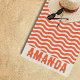 personalized Coastal theme beach towel orange and cream with wavy stripes are the perfect vacation gift, birthday gift or bridesmaid gift for a family vacation gift.