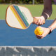 Create your own retro personalized pickleball paddle. Features abstract vintage stripes design and custom name in a classic style typography.
