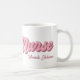 Fun pink and white personalized nurse mug featuring the word Nurse in a bold textured retro font, and your custom name.