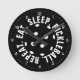 😍 Retro Pickleballs on black background. Perfect as a gift for pickleball player. with numbers Round Clock 😍 Retro Pickleballs / black motif and custom text. Eat, Sleep. Pickleball. Repeat