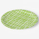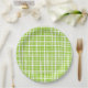 Retro Picnic Plaid Pattern in Lime Green and White Paper Plate