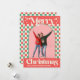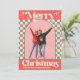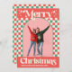 A retro pink, green and cream grid patterns this merry and bright holiday greeting card. Featuring a cheery green lined arch photo frame and space for your special holiday message.