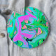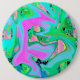 Retro Pink and Light Blue Liquid Art on Hydrangea 6 Inch Round Button