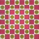 This eye-catching geometric pattern features a playful chequerboard of rose pink and white squares accented with olive green circles. The repeating motif creates a striking rhythm that blends modern minimalism with retro charm. The contrast of warm pink and earthy green gives the design both vibrancy and balance, while the crisp white adds clarity and space. With its bold shapes and rhythmic layout, this abstract composition captures attention through simplicity, symmetry, and colour harmony.