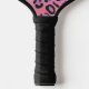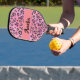Add a bit of wild flare to your pickleball game with this retro style pink and orange leopard spotted paddle. It can be personalized with your desired name or initials.