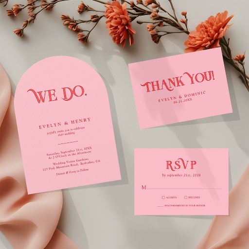 Retro Pink and Red Modern Wedding Photo Thank You