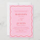 Retro Pink and Red Squiggle Curves Wavy Wedding Invitation