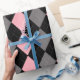 Retro Pink Black Grey Argyle Wrapping Paper
