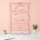 Welcome your guests and celebrate the bride-to-be with these retro, hand drawn pink bow "she's tying the knot" themed acrylic welcome signs. This pink bow bridal shower acrylic sign can be customized with your own details and is available in multiple sizes.