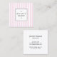 Chic pink and white stripes bring a retro personality to this bakery business card. Reminiscent of ice cream parlours and candy shops of yesterday, this design is sure to bring a touch of nostalgia to your business brand. Created for bakeries, cake decorators, catering companies, sweets, home baked goods or any business looking for a stylish motif. Your name is simply styled in a white square on the front, while your contact info and details are available on the backside. Design © 1201AM Design Studio