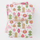 Collection of three coordinating Christmas gift wrapping sheets.
