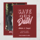 Retro Pink Deep Red Modern Unique Photo Wedding Save The Date