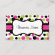 Bright pink, lime and black polka dots decorate this stylish business card. Customize the information on this business card to suit your needs, add or delete information, change the font style, font size, etc...The design is from original art. Use this business card for a spa, salon, small business, home decor, event planner, bakery, cake designer, gourmet food, chocolates, boutique, child care, preschool, daycare, candy, ice cream, etc...