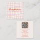 Retro Pink Hand Written Drawn Groovy Girly QR Code Square Business Card