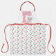This playful apron features the saying "Baking Spirits Bright" on the bowl of a pink stand mixer with alternating colours on lowercase letters with sparkle accents. Colours include pink, red, green and light blue.