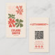 Retro Pink Red Green QR Code Groovy Floral Boho Business Card