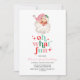 Oh What Fun! Retro pink Santa Christmas birthday invitation.
