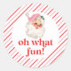 Retro Pink Santa Oh What Fun Classic Round Sticker